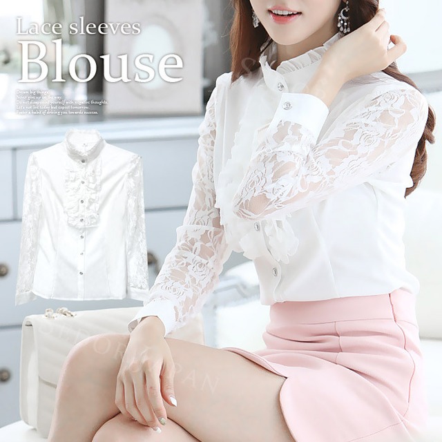 オフィス レディース 長袖 ブラウス ホワイト S M L XL XXL 10代 20代 30代 フェミニン ガーリー ロリータ コスプレ 発表会 演奏会 入学式 フリル 白 ホワイト