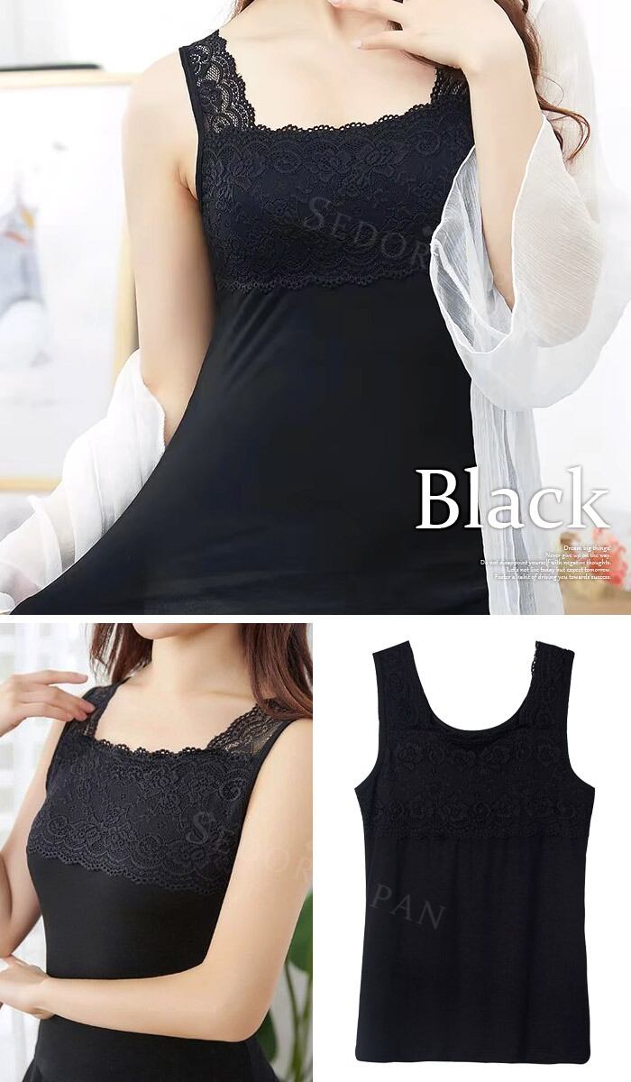 タンクトップ レディース レース 速乾 おしゃれ チラ見え防止 韓国ファッション トップス 下着 肌着 インナー 黒 ブラック 白 ダンス 衣装 韓国