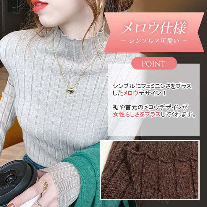 プチハイネック メロウ フリル トップス ニット カジュアル 大人可愛い きれいめ レディース 長袖 タイト ストレッチ インナー リブ 上品 清楚 韓国 トレンド 人気 ランキング レディースファッション 韓国ファッション セドールジャパン ポイント消化 セール 送料無料