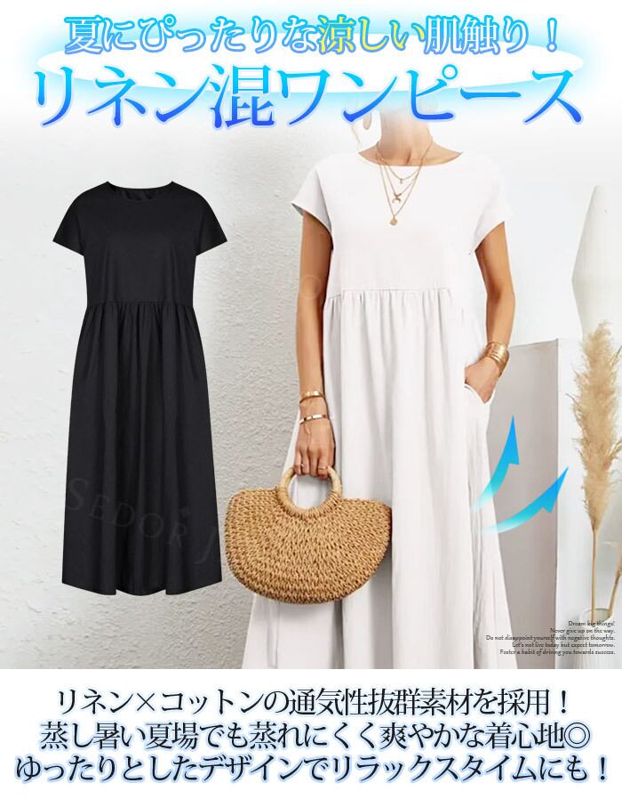 ワンピース 夏 レディース ロング 膝下 夏用 50代 ロングワンピース ワンピ リネン 涼しい 半袖 麻 綿 春 きれいめ 薄手 フレンチスリーブ 着痩せ 部屋着