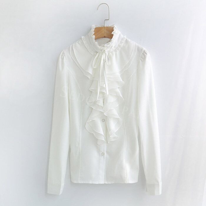 リボンブラウス 長袖 スーツ ブラウス レディース オフィス リボン フリル 白 長袖 かわいい ロリータ フリルブラウス ブラウス ハイネック コスプレ 衣装