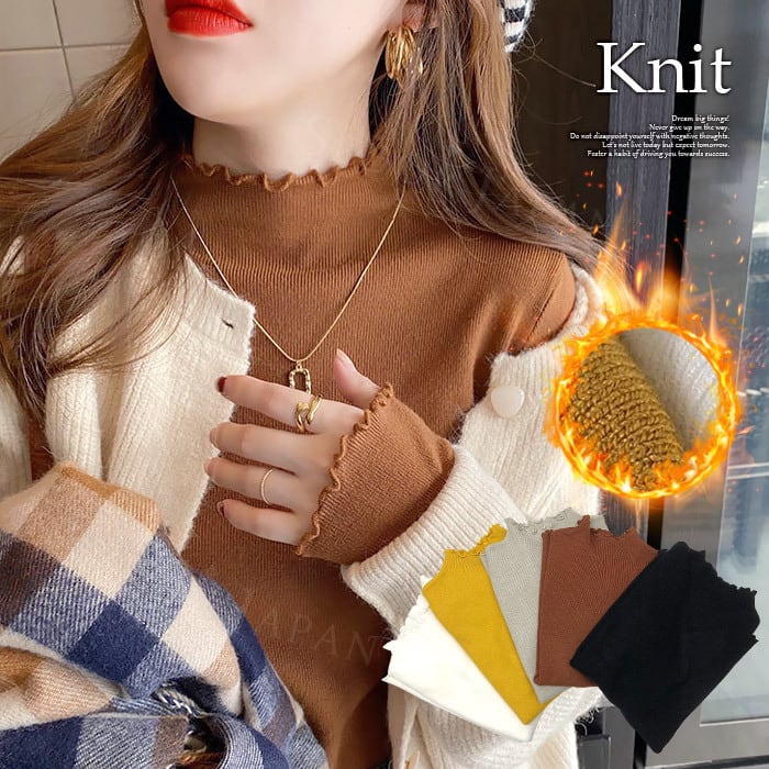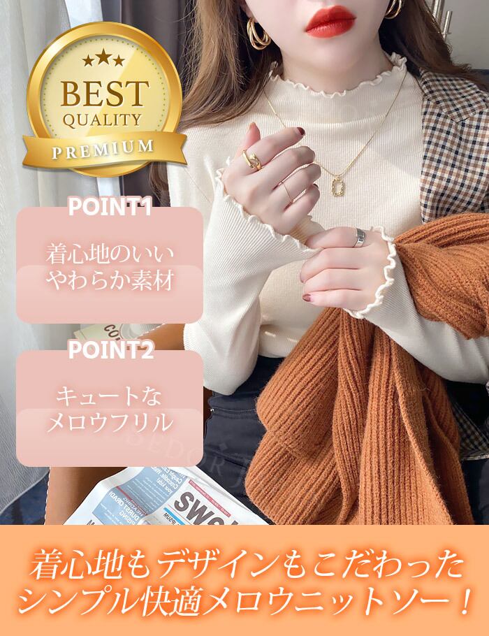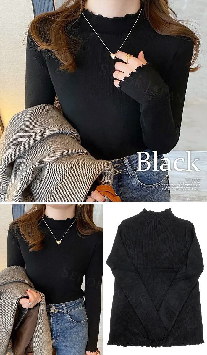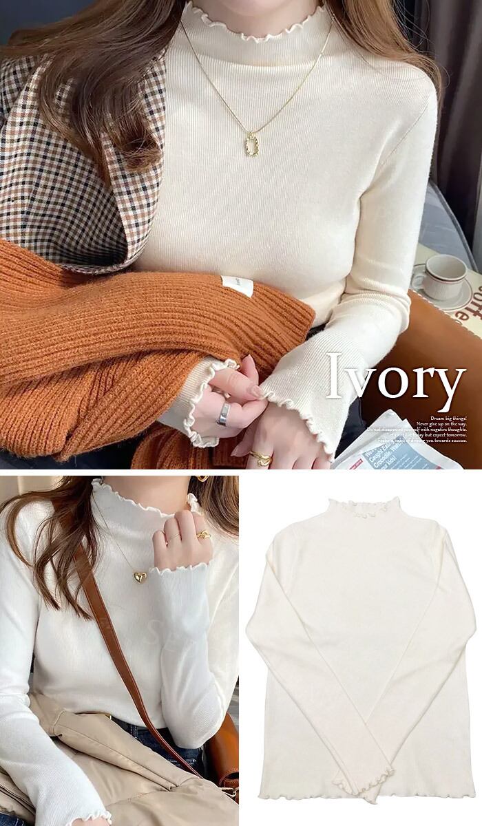 プチハイネック メロウ フリル トップス ニット カジュアル 大人可愛い きれいめ レディース 長袖 タイト ストレッチ インナー リブ 上品 清楚 韓国 トレンド 人気 ランキング レディースファッション 韓国ファッション セドールジャパン ポイント消化 セール 送料無料