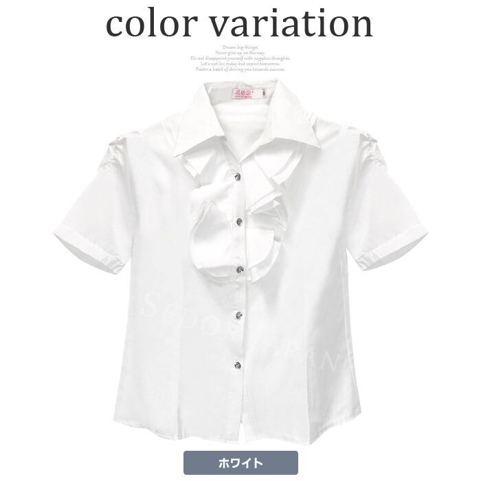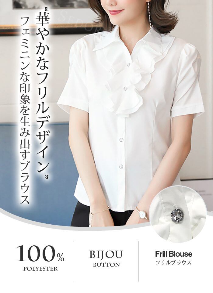 ブラウス オフィス レディース 半袖 シャツブラウス 無地 フリル 白 シャーリング かわいい フリルブラウス ロリータ ブラウス コスプレ ビジュー 発表会