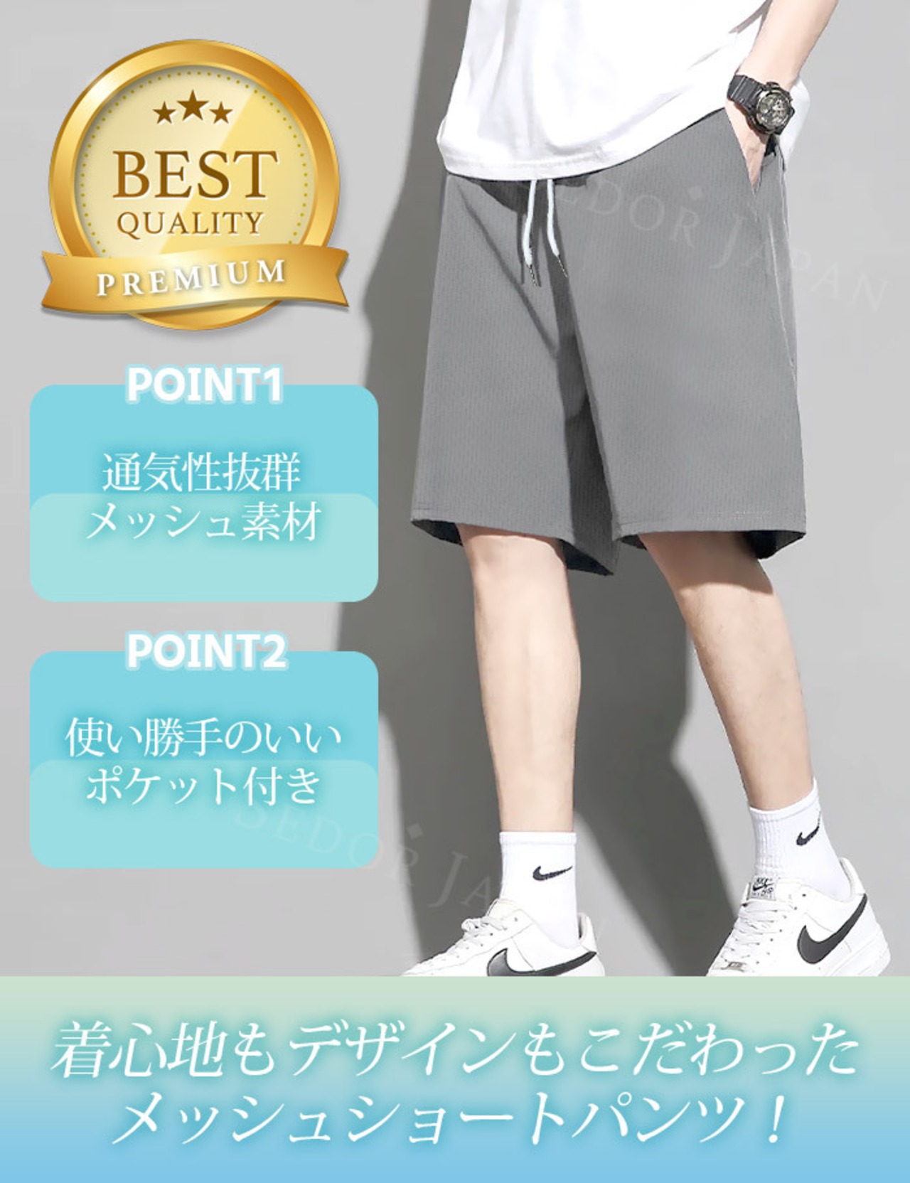 軽量速乾メッシュ素材なので快適な履き心地を実現!