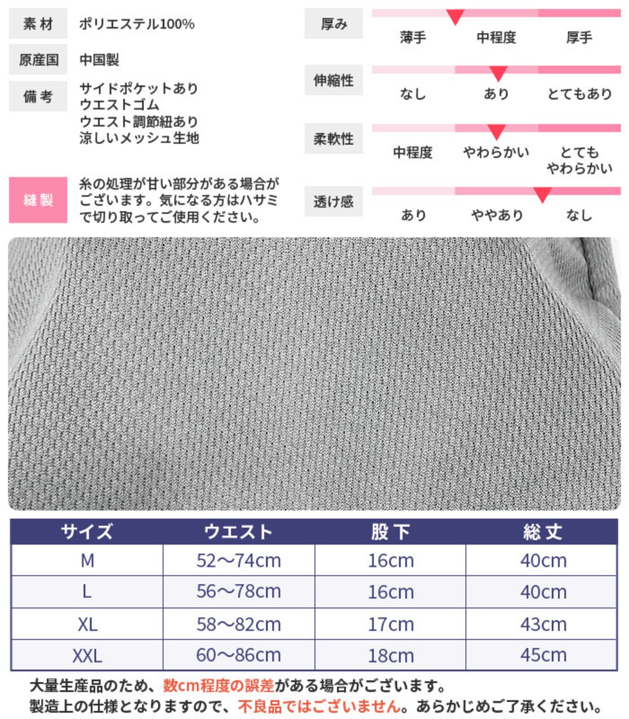 [男女兼用 超軽量メッシュジャージショートパンツ]