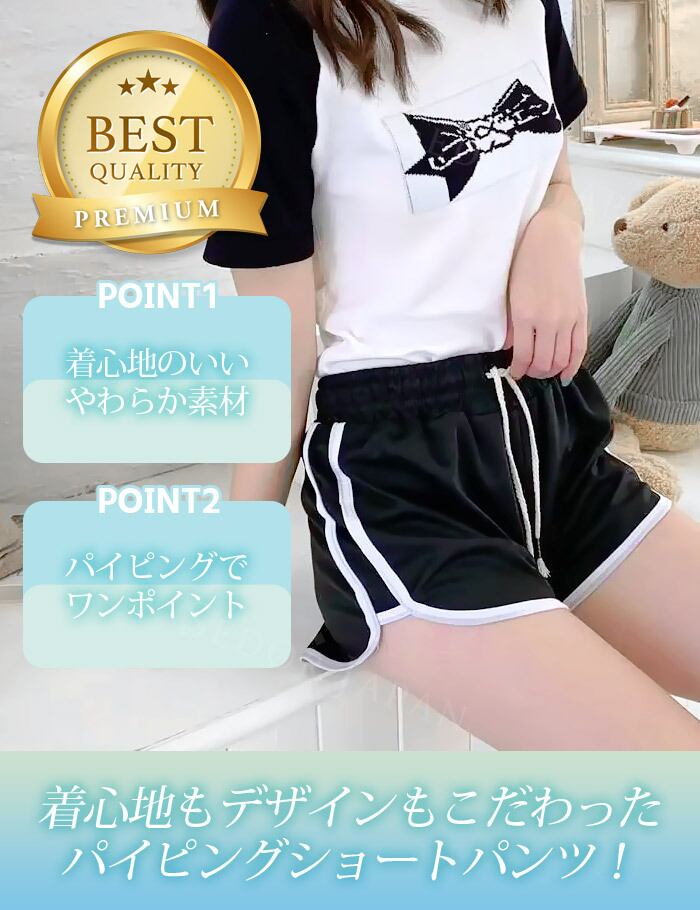 ショートパンツ ルームウェア レディース ボトムス ショート丈 無地 パイピング ライン入り 大きいサイズ 黒 白 ウエストゴム スポーツ ヨガ 部屋着