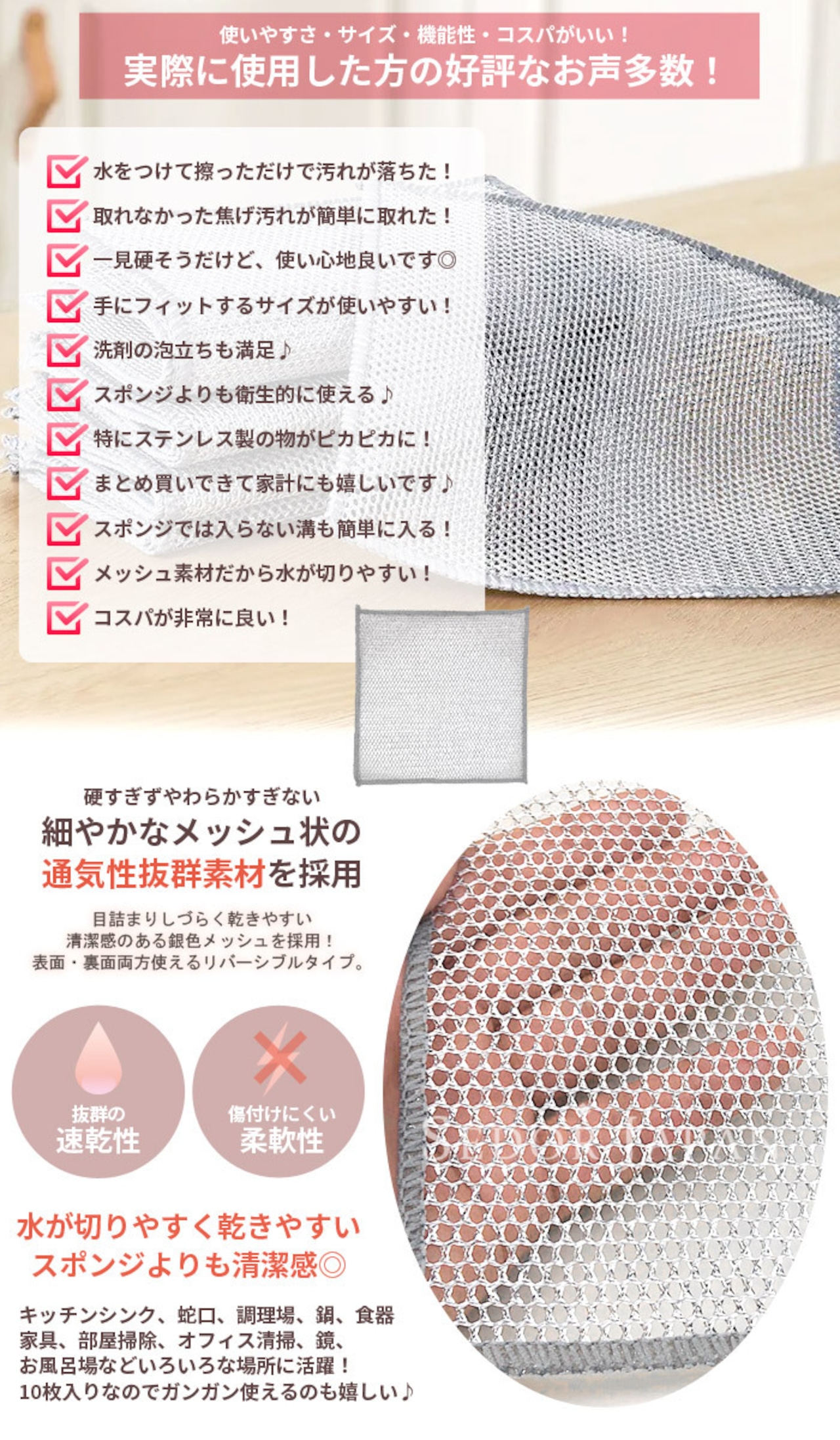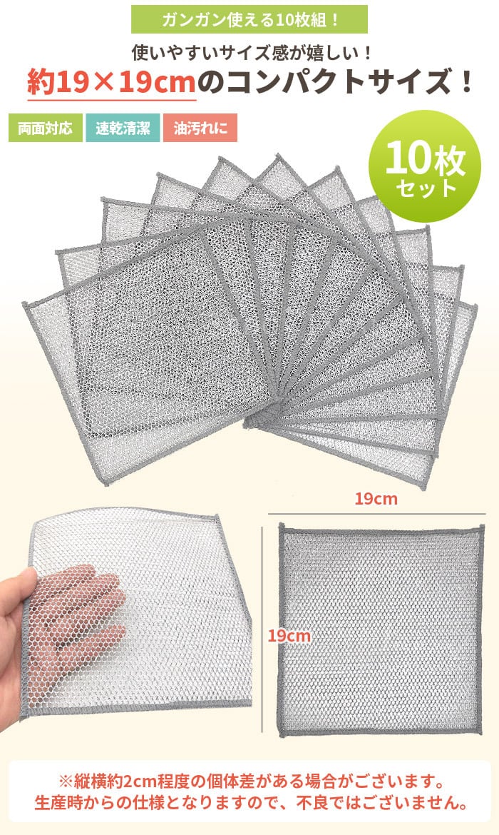 ふきん メッシュクロス 10枚組 セット 通気性 乾きやすい 繰り返し 使用可能 食器洗い スポンジ おすすめ 台所 シンク 掃除 大掃除 頑固 汚れ 焦げ 油汚れ