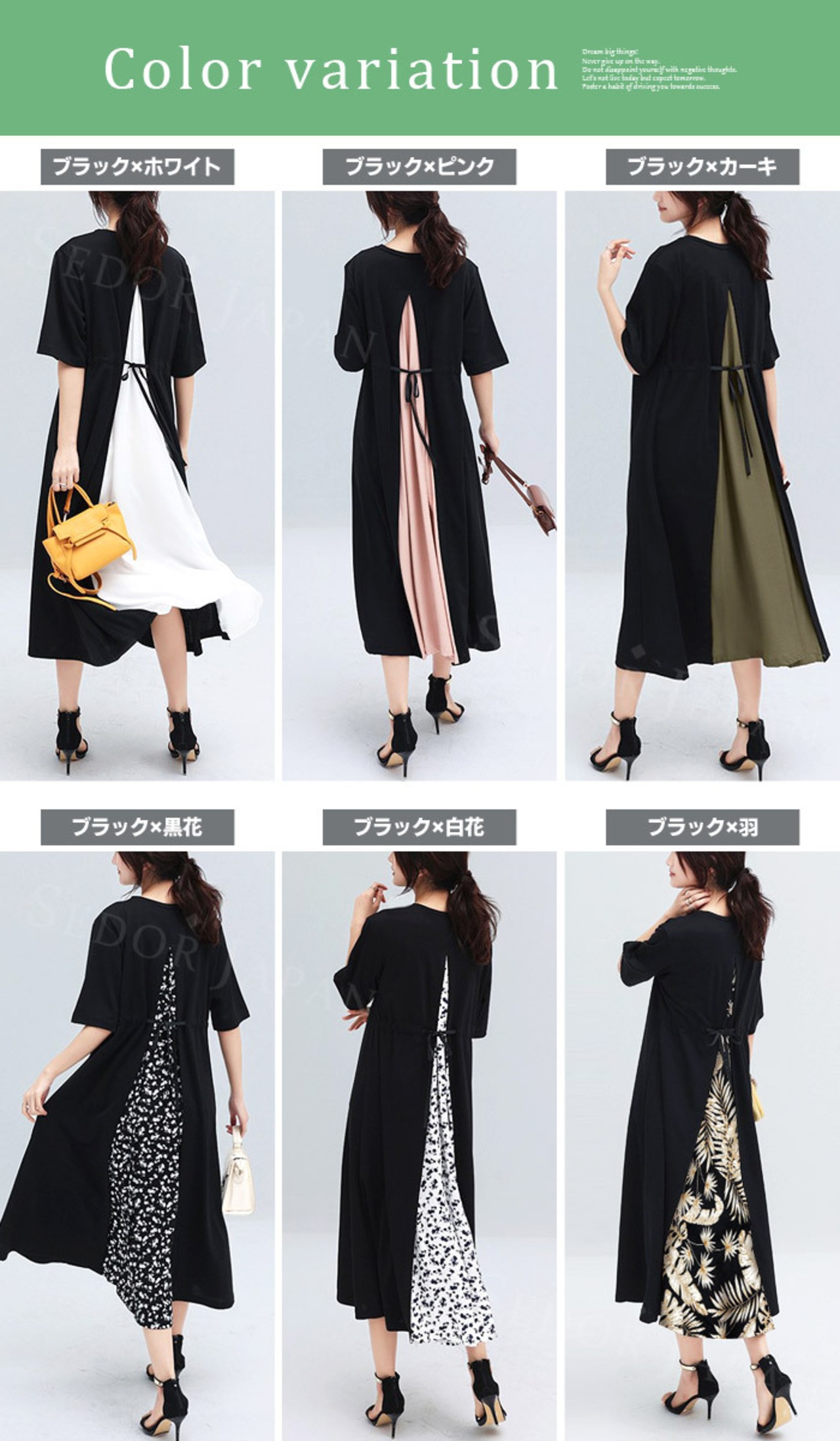 ワンピース レディース 夏 ロング カジュアル 春 春夏 きれいめ 半袖 黒 花柄 切り替えワンピース 切替 ロングワンピース マキシワンピース 夏 黒