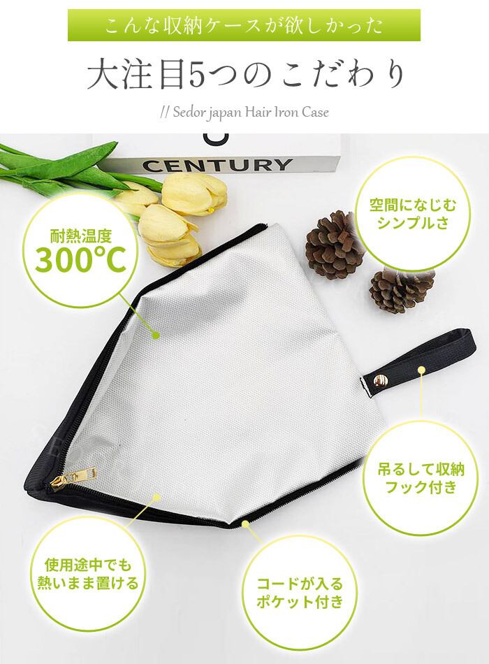 ≪熱いまま収納可能!持ち運びも便利なヘアアイロンポーチ!≫