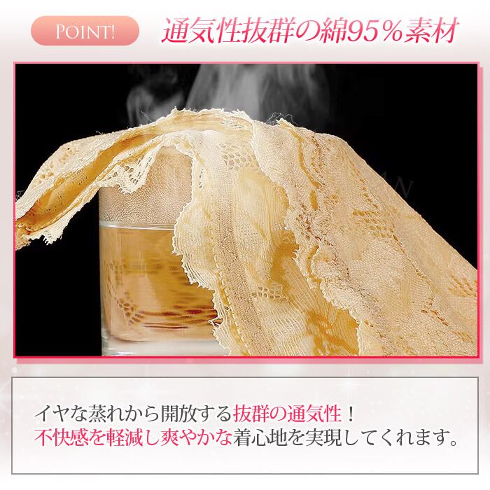 やわらかな綿95%素材とレース素材を組み合わせた、エレガントなデザインが魅力!