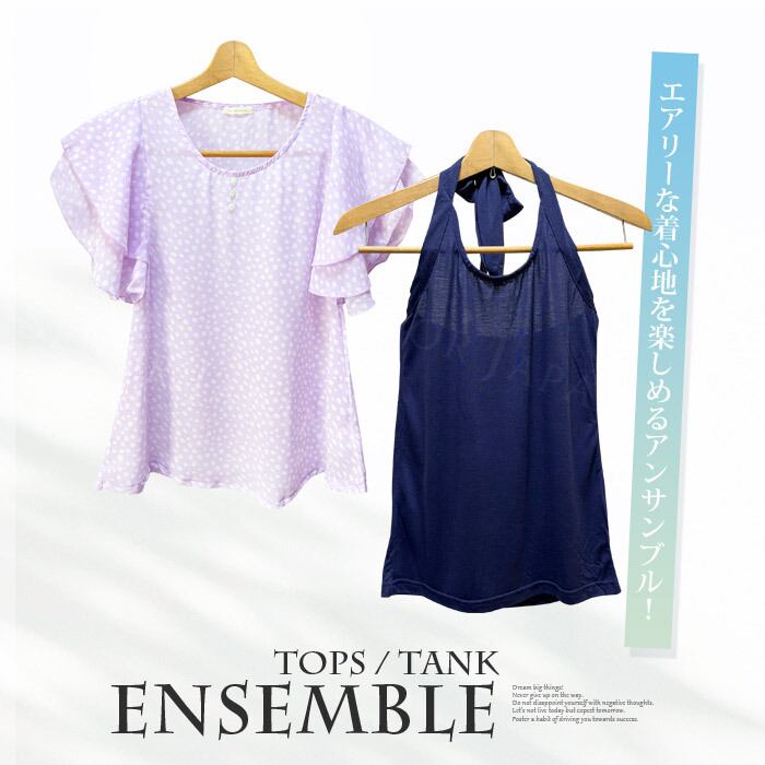 透け感のあるエアリーな着心地のシフォンブラウスとタンクのセット!
