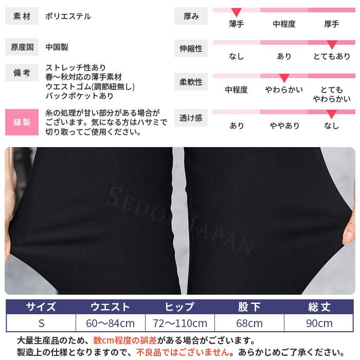 S:ウエスト60-84cm/ヒップ72-110cm/股下68cm/総丈90cm