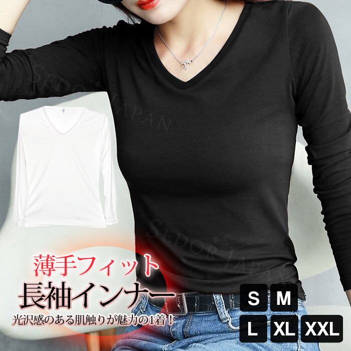 インナーシャツ 長袖 レディース Vネック カットソー 暖かい暖かい 婦人 肌着 Tシャツ 大きいサイズ 着膨れしない ストレッチ あったかインナー 薄手