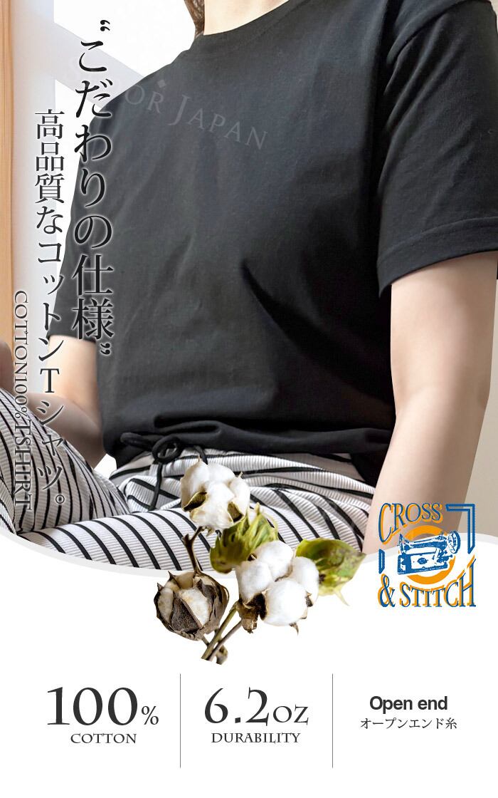半袖tシャツ レディース キッズ 子供 綿100% 黒 クルーネック tシャツ 夏 涼しい かわいい 厚手 厚い 6.2oz コットン 無地 肌に優しい CROSS & STITCH