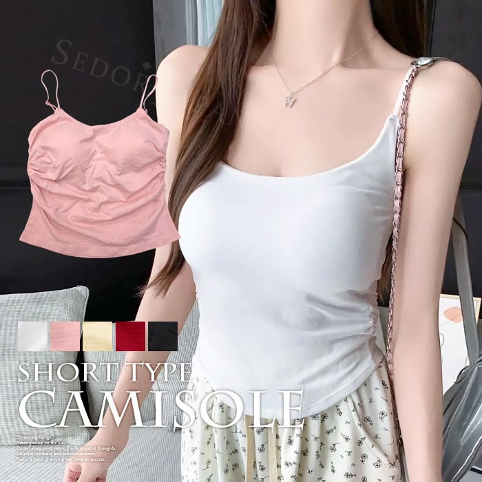 短丈ウエストくびれカップ付きキャミソール ブラトップ 盛れる 短丈 キャミ キャミソール カップ付きすけないインナー カップ付きキャミソール パジャマ レディース ブラカップ 無地