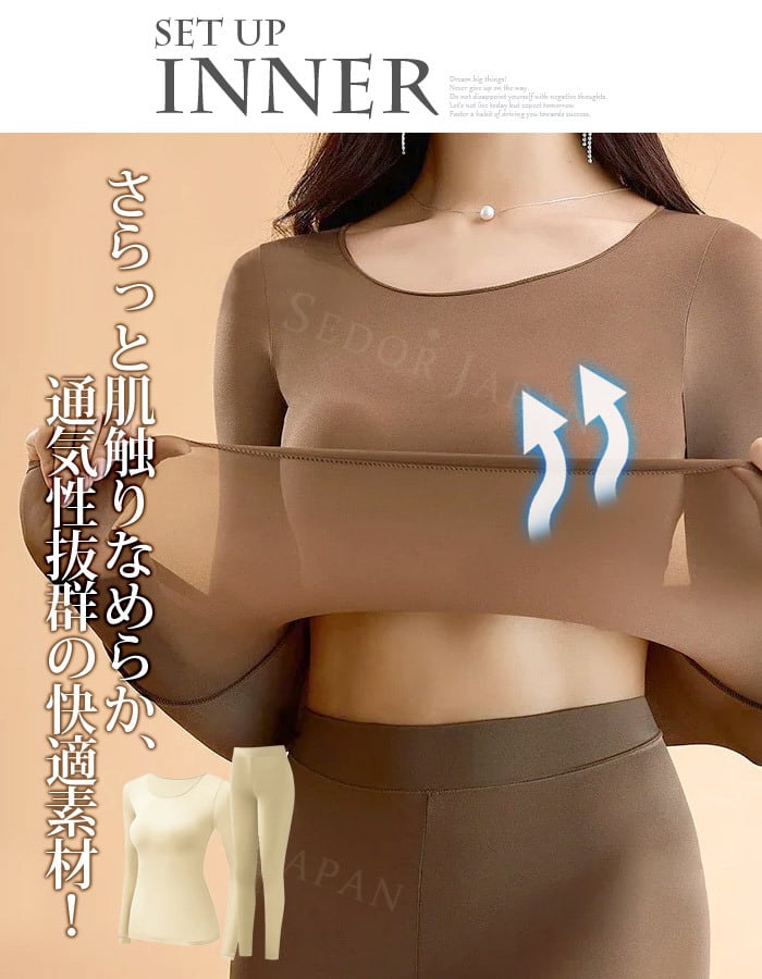 インナー 肌着 セットアップ レディース 長袖 無地 可愛い 上下セット クルーネック あったか あたたかい 春 秋 冬 大人 韓国風シンプル トレンド 人気 ランキング レディースファッション 韓国ファッション セドールジャパン