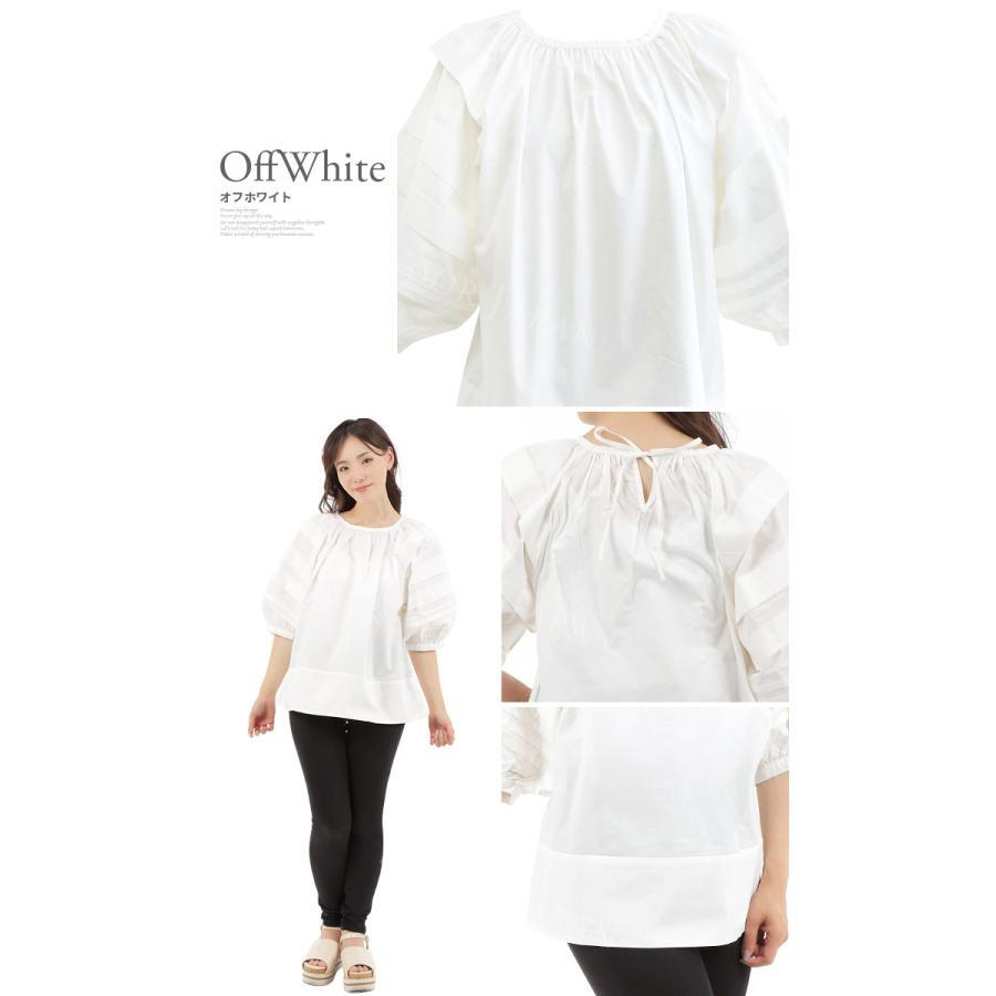 tシャツ ブラウス レディース 白 半袖 リボン おしゃれ 夏 春 春夏 七分袖 安い 綿100% 綿 ブロード 無地 パフスリーブ ゆったり