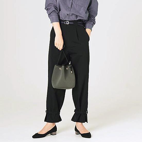 スナップボタンで開閉するので開け閉めしやすく、留め方によって印象が変わるのも魅力です。