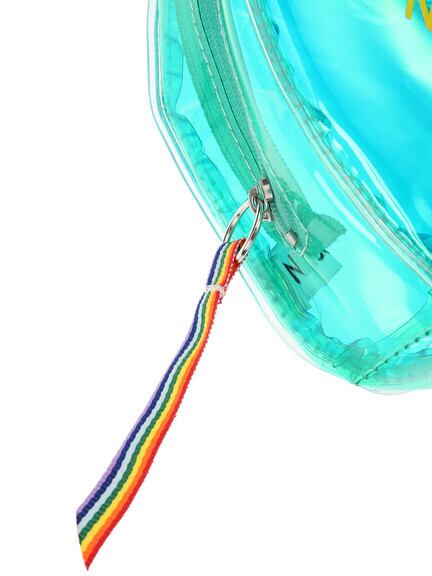 愛らしいハートのフォルムに、レインボーデザインのZIPトップがPOPなアクセントに。フロントロゴでブランドアピールも忘れずに◎