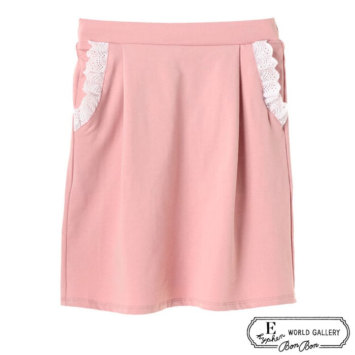 E hyphen world gallery BonBonより、ミニ裏毛のカジュアルなベースにフリルをチラリと覗かせたモダンガーリーなスカート。
