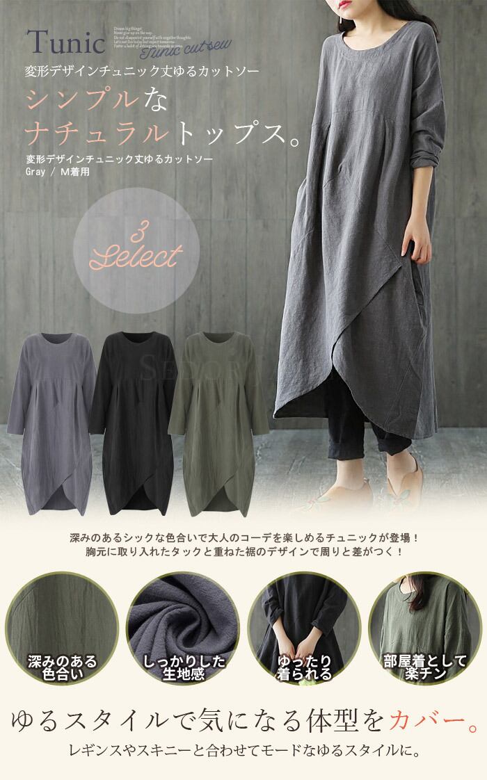 [変形デザインチュニック丈ゆるカットソー]